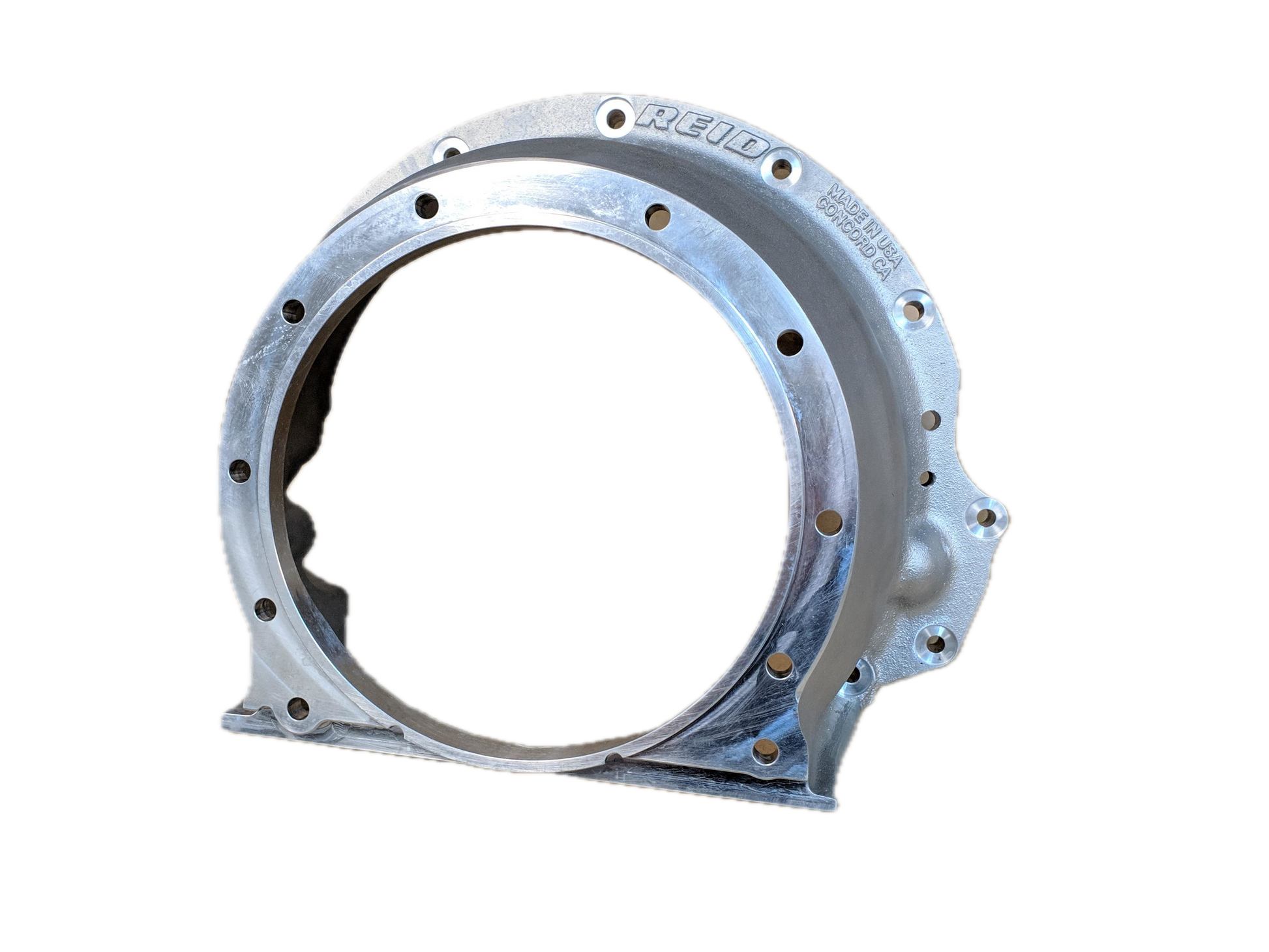 Small Block Mopar bellhousing for the Reid Racing 2 piece Super 80® transmission case fits 318, 340, and 360A series engines and Gen III Hemi's. The bellhousing is standard GM length and accepts the standard OEM size lock-up torque converter for a transmission swap without any adapter plates needed. With the proper spacing, a non lock-up converter can be used if desired. Cast from high strength aluminum heat treated for additional toughness, the bellhousing passes the stringent SFI 30.1 certification* and is approved with no external shields required.